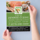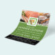 Restaurante japonés, folleto publicitario de sushi junto a la tienda de tarjetas de visita.