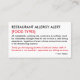 Notificar claramente a un restaurante de sus alergias y tener información de emergencia en la parte posterior.