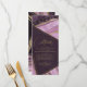 Se obtiene tanto glamour como alto impacto con este conjunto de bodas coordinadores que presenta patrones abstractos de agate, texturados con falsos cristales y resaltados en brillantes Relieves metalizados de oro falso. Combinaciones de colores llamativos, como esta suite con su paleta de lujo, desde uva muda y malva hasta rosa de orquídea suave, crean el fondo para las piezas de esta colección coordinada. Esta segunda versión de nuestro menú de la recepción de bodas incluye todo lo anterior, además de una caligrafía elegante en un sello semitransparente y en ángulo para mantener sus selecciones de menú. Se proporciona una plantilla para agregar fácilmente los detalles del menú, las iniciales y la fecha del boda. Vea el vínculo de colección en esta página para ver todos los elementos coincidentes de este hermoso diseño o busque ID827 para ver opciones de color adicionales para este diseño.