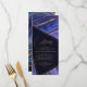 Se obtiene tanto glamour como alto impacto con este conjunto de bodas coordinadores que presenta patrones abstractos de agate, texturados con falsos cristales y resaltados en brillantes Relieves metalizados de oro falso. Combinaciones de colores llamativas, como esta suite con su paleta de cielo nocturno, desde el azul oscuro hasta el violeta suave, crean el fondo de las piezas de esta colección coordinada. Esta segunda versión de nuestro menú de la recepción de bodas incluye todo lo anterior, además de una caligrafía elegante en una etiqueta azul marino semirtransparente y anglicargada para mantener sus selecciones de menú. Se proporciona una plantilla para agregar fácilmente los detalles del menú, las iniciales y la fecha del boda. Vea el vínculo de colección en esta página para ver todos los elementos coincidentes de este hermoso diseño o busque ID827 para ver opciones de color adicionales para este diseño.