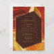 Se obtiene tanto glamour como alto impacto con este conjunto de bodas coordinadores que presenta patrones abstractos de agate, texturados con falsos cristales y resaltados en brillantes Relieves metalizados de oro falso. Combinaciones de colores llamativas, como esta colección con su atrevida paleta cálida de naranja caliente a amarillo dorado crean el fondo para las piezas de esta colección coordinada. Esta elegante invitación a la cena de ensayo cuenta con una etiqueta hexagonal y semitransparente en castaño chocolate para sostener el texto. Se proporciona una plantilla para agregar fácilmente los detalles del evento. Vea el vínculo de colección en esta página para ver todos los elementos coincidentes de este hermoso diseño o busque ID827 para ver opciones de color adicionales para este diseño.