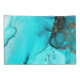 Arte abstracto vibrante con colores turquesa y frescos de verano. Este color turquesa se imprime en dorado y turquesa con tonos verde azulados, negros y dorados. Hermosos colores oceánicos orgánicos y remolinos en oro y turquesa a la moda. Obra original de Pauline Benjes sobre la tinta de alcohol. Resumen Agate Funda de almohada turquesa de oro.