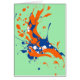 Un diseño elegante de arte expresionista abstracto salpicado de colores naranja y azul contra un fondo verde menta. Arty y funky, este diseño es colorido y vívido.