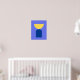 Un arte moderno abstracto de diseño minimalista de formas geométricas en colores azul oscuro y amarillo claro sobre un fondo azul medio.