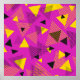 Un diseño abstracto de arte geométrico moderno de formas triangulares en colores amarillos y negros sobre un fondo violeta claro.