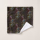 Giro atómico, edad espacial de los años 50, patrón retro moderno de mediados de siglo. Negro con remolinos de color morado, azul y amarillo.