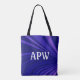 Este bolso de tote monograma tiene letras blancas sobre un fondo violeta y negro de ráfaga. Puede personalizarlo con sus iniciales.