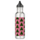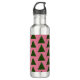 Resumen árbol de Navidad verde sobre fondo rosa botella de agua de acero inoxidable