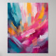 Una llamativa pintura abstracta moderna caracterizada por llamativas y gruesas pinceladas en vivos tonos rosa, azul, naranja y blanco. Las capas texturadas y los trazos de barrido crean una sensación de movimiento y energía, con los colores mezclados y contrastados en una composición dinámica y contemporánea. La interacción de tonos fríos y cálidos añade profundidad, haciendo que esta obra de arte sea llamativa y expresiva.