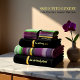 Personaliza la moderna y romántica abstracción contemporánea en toallas de baño en monograma color gris morado verde con Relieve metalizado dorado y fondo negro