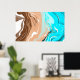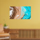 Playa azul, marrón, tostada y blanca con aspecto de arte digital fluido abstracto. Bonito para una casa de playa o temática costera.
