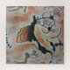 Hace miles de años, nuestros ancestros lejanos exploraban en profundidad los sistemas de las cuevas y después pintaban los animales que deseaban cazar en las paredes. Iluminados solamente por antorchas tenues y humeantes, crearon imágenes de renos, caballos, rinocerontes lobos y toros poderosos en ricos matices de tierra de ocre, marrón, rojo y carbón vegetal. Inspirada por estos antiguos artistas, esta es una colorida representación de los poderosos animales de la era del hielo y los hombres que los cazaron con un giro moderno y abstracto.