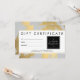 Coordina con las pinceles abstractas de oro en la plantilla de tarjetas de visita gris antes de las 12.00 horas. Este diseño personalizado de certificado de regalo presenta un fondo de oro falso de pinceles de pintores con un logo de placa negra para sostener su nombre o nombre de negocio. Este diseño forma parte de una colección de materiales de marketing de coordinación para ayudar a promocionar su negocio. Arte y diseño originales © 1201AM CREATIVE