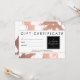 Coordina con las pinceles de oro Rosa abstract en la plantilla de la tarjeta de visita blanca antes de las 12.00 horas. Este diseño personalizado de certificado de regalo presenta un fondo de oro falso rosa de pinceles de pintorescos con el logo de una placa negra para sostener su nombre o nombre de negocio. Este diseño forma parte de una colección de materiales de marketing de coordinación para ayudar a promocionar su negocio. Arte y diseño originales © 1201AM CREATIVE
