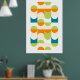 Hermoso naranja contemporáneo, crema de marfil, blanco, verde limón y azul verde azulado color verde ondulado, medio círculo y cuadrado patrón. Elegante, elegante y ecléctico diseño minimalista para el trendsetter artístico de cadera, estilo de arte retro vintage o amante abstracto de los motivos geométricos digitales. Coincide con el diseño con los colores de la decoración y decora la pared con algo exclusivo y único en la pared.