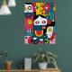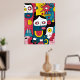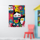 Un ilustracion de doodle de arte pop abstracto audaz y colorido con caras humanas expresivas y formas lúdicas en una paleta vibrante de rojo, amarillo, azul, negro y blanco. Esta obra de arte combina el estilo urbano del arte callejero con el expresionismo abstracto contemporáneo, haciéndolo perfecto para el arte mural, los posters, las impresiones de moda y los accesorios creativos. Un diseño divertido y artístico que capta las vibraciones pop modernas y el encanto del doodle.