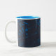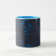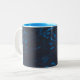 La pintura de formas abstractas de azul claro sobre un fondo azul marino mezclado, son tazas impresas. Puedes elegir el estilo de la taza.