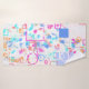 Un diseño abstracto de formas geométricas en capas sobre un fondo desordenado.