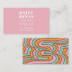 Una tarjeta de visita de estilo abstracto estilo años 70 con un estilo burgués y llamativo, con líneas onduladas abstractas y un estilo retro chunco para tu nombre. Sólido rosa en el frente con colorido y atrevido en tonos verde azul, naranja, rosa en la parte posterior.