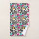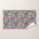 Esta vibrante toalla de baño presenta una fusión dinámica de audaces rayas negras y blancas tipo cebra, con pinturas coloridas salpicadas en formas de hojas de otoño. El sorprendente contraste entre el fondo monocromo y los tonos vivos de rojo, naranja y amarillo crea un patrón visualmente cautivador. Ideal para diversas aplicaciones creativas, este diseño reúne la esencia salvaje de las impresiones animales con los tonos cálidos del follaje otoñal.