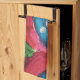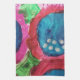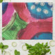 Magenta, y rosa caliente, con salpicaduras de azul profundo dominan esta toalla de cocina.