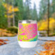 Una vibrante ráfaga de colores eléctricos y formas de esténcil que bailan a través del lienzo en puro caos artístico. Presenta magentas audaces, amarillos eléctricos, azul turquesa y violetas profundas que se mezclan y chocan en perfecta armonía. Las texturas salpicadas de pintura, los motivos espirales y las formas fluidas crean una pieza energética que capta la esencia de la libertad creativa y la expresión artística. Personaliza con un nombre.