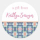 Estos pegatinas de regalo presentan la impresión "Kaitlyn" reflejada creando un patrón de tipo caleidoscopio junto con un mensaje de personalizable.