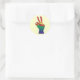 Un cuadro abstracto de la mano de la señal de paz usando los colores del arco iris, de CherylsArt, está impreso en pegatinas personalizados. Usé mi propia mano para crear este diseño.