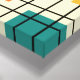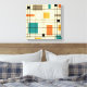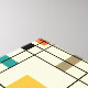 Un patrón abstracto moderno de medio siglo con líneas negras y formas cuadradas y rectangulares coloridas en verde azulado, naranja y oro.