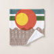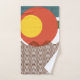 Este conjunto de toallas tiene un diseño moderno de mediados de siglo de líneas onduladas horizontales con dos círculos y dos bandas anchas horizontales. ¿Quieres colores diferentes? Mándame un mensaje.