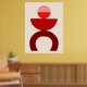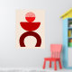 Un arte moderno abstracto de diseño minimalista de formas geométricas en tonos rojos sobre un fondo de color claro.