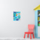 Resumen La impresión poster azul y naranja de acuarela es brillante y divertida, se ve en una sala de niños o en una sala de estar.