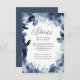 Elegantes y elegantes tarjetas de envoltura de bodas con detalles bodas rodeadas de flores y hojas de color azul índigo. Personalice la tarjeta agregando información importante, como detalles de la reserva de alojamiento, etc.