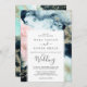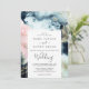 Esta tarjeta de invitación nupcial con acuarela celeste abstracta es perfecta para un boda moderno. La decoración es elegante y sobria, con una acuarela azul marino oscuro y rosa y salpicaduras de purpurina dorado, creando un espacio exterior y el cielo nocturno.