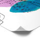 Un ilustracion de arte abstracto contemporáneo y moderno con formas violetas, acuáticas y verde azuladas de líneas negras y pintura negra salpicada por encima de la parte superior. Un dibujo sencillo pero impactante.