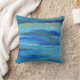 Pilar con ondas oceánicas abstractas de azul ondulante a través de este MHamiltonDiseño original de arte en tonos verde azulados, turquesa, azul claro y cobalto con un toque de amarillo. El cojín del sofá de las olas del océano "Hamilton Blues" se vería como una parte de la decoración de tu cabaña de playa o de tu condominio.