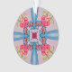 Este patrón vibrante en este adorno es de una de mis obras de arte originales pintadas a mano. Este bonito adorno de lavanda, cruz abstracta de color azul pastel, rosa y dorado es un agradable añadido a la decoración de los Navidades.