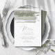 Una pintura pinta una acuarela en tonos brillantes de verde oliva con toques de lavanda que acentúan las piezas de esta hermosa suite boda. La tarjeta "Menú" boda que se muestra aquí también incluye una caligrafía escrita a mano elegante y mucho espacio para el texto. Agregue fácilmente sus propios nombres, fecha de boda y selecciones de menú usando la plantilla proporcionada. Busque ID886 para ver otras piezas y opciones de color para este conjunto.