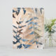 Hojas en capas abstractas y marcas de medios mixtos en una paleta de color azul y neutro.