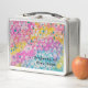 El diseño de arte moderno presenta un fondo rosa, azul y amarillo y una bandeja de pintura con una estampilla de pintura acrílica blanca. ¡Personalizable.