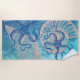 No te pierdas el espacio en la arena con esta bonita toalla de playa de diseño artístico abstracto en hermosos tonos azules y verde azulados con acentos de beige sobre la vida marina y las conchas.
