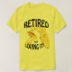 Un ilustracion gráfico de un mapa de Florida da forma al sol y una silla fácil en una camiseta masculina (o cualquier otra) de Florida. La camiseta tiene el texto "¡Retirado y amándolo!". ©2012charmainepaulson