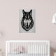 Retrato blanco y negro de un lobo adorable sobre un fondo gris. Este es un arte generado por IA.
