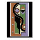 Diseño cubista de la era del art déco de una cara en verde negro, marrón, púrpura, poner crema, y verde oliva. Usted no necesita entenderlo para disfrutar del diseño y de los colores. Hace una gran tarjeta para cualquier ocasión.