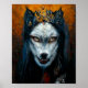 Retrato de una mujer reina de Werewolf, usando corona (o diadem) y un disfraz medieval. Arte digital al estilo de pintura al óleo.