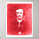 Este es un retrato de arte pop rojo del autor Edgar Allan Poe