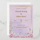 Con amor en nuestros corazones y alegría en nuestras almas, los invitamos a celebrar el comienzo de nuestra eternidad. Abierto por la suave elegancia del morado, nuestro día de bodas será un reflejo del romance, la simplicidad y los momentos apreciados. Únete a nosotros para una sincera celebración llena de amor, risas y recuerdos inolvidables. Su presencia hará que nuestro día sea aún más especial.