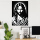 Retrato blanco y negro de Jesucristo con pelo largo y barba. Este es un arte generado por IA.