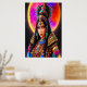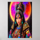 Le pedí a AI que hiciera un retrato de la diosa azteca Metztli, aquí con ojos azules y pelo largo negro con una corona única en la cabeza, usando joyas alrededor del cuello con la luna como fondo. es la deidad de la luna, la noche y los granjeros. Este es un arte generado por IA.