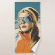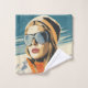 Guay retro gráfico como un poster de los 60. Un retrato de una joven con abeja en la nieve